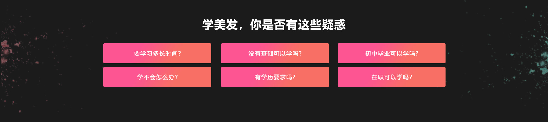 我們不僅學(xué)習(xí)專業(yè)的技能,還有一整套完善的就業(yè)創(chuàng)業(yè)課程體系能夠幫助學(xué)生提高就業(yè)率,提高待遇,增強(qiáng)自信心,以及在實(shí)際工作和開(kāi)店中現(xiàn)場(chǎng)應(yīng)對(duì)能力