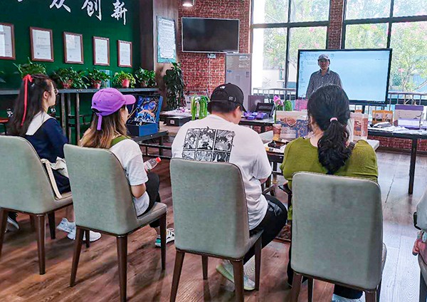 南京夢(mèng)計(jì)劃王總在宣講會(huì)上作企業(yè)介紹并且還對(duì)本公司部分作品作出詳細(xì)解說。同學(xué)們認(rèn)真聽講,耐心詢問。