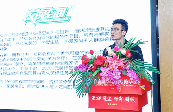 校企合作系列活動一直受到南京新華電腦學(xué)院同學(xué)們的熱捧,通過和企業(yè)精英們零距離接觸,傾聽企業(yè)發(fā)展故事,知曉前沿行業(yè)資深,了解一線行業(yè)發(fā)展前景,學(xué)習(xí)企業(yè)文化底蘊,同學(xué)們不僅提升了學(xué)習(xí)的積極性,更對所學(xué)專業(yè)和企業(yè)人才需求有了更清晰的認(rèn)識,在今后學(xué)習(xí)中有針對性的學(xué)習(xí)提高。此次活動邀請到南京新空間榜樣裝飾工程有限公司設(shè)計總監(jiān)秦昱,為同學(xué)們介紹工作后的工作流程及方式方法。