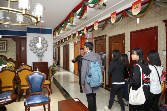 新華學(xué)子參觀(guān)魯公大宅裝飾有限公司,心中的欣喜全展現(xiàn)在笑顏中